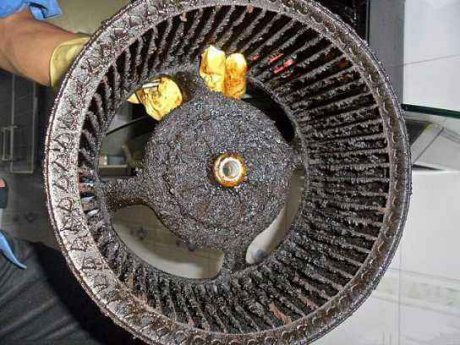 剩余较小比例的微油烟分子被卷入高速旋转的风轮,由于油脂跟烟的重量是不同的,在离心力的作用下微油分子被甩到内壁,导入油孔。净化后的气体则顺着排风管道被排出室外。