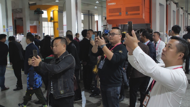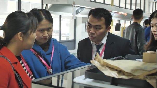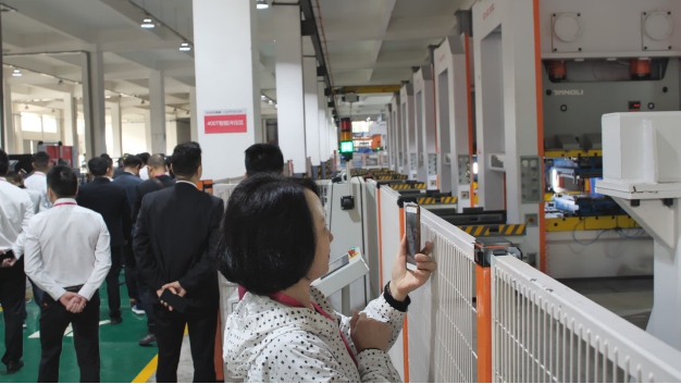 客户纷纷拍手叫绝,忍不住拿出手机拍下佳歌4.0智能生产车间。