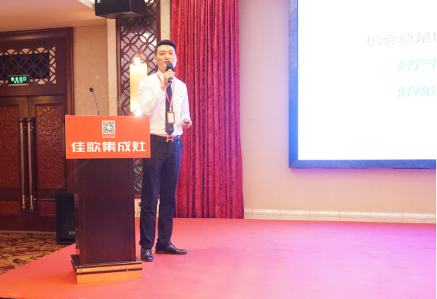 本次会议由销管部部长魏谍主持,佳歌集成灶总经理袁海滨现场致辞,为大家讲解了佳歌的品牌优势。佳歌集成灶营销总经理黄忠海就厨电市场与集成灶朝阳产业进行市场分析及前景预测,帮助在座来宾了解厨电市场及集成灶行业发展趋势及其潜在利润空间。