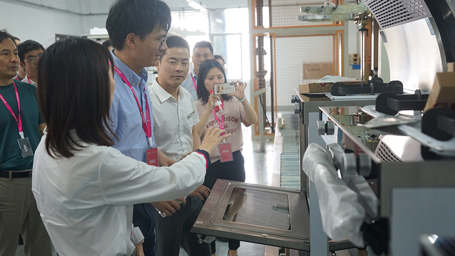 考察团一行首先参观了佳歌集成灶智能生产车间,对佳歌产品的生产制造、品质管控、技术研发等内容进行了深入了解。