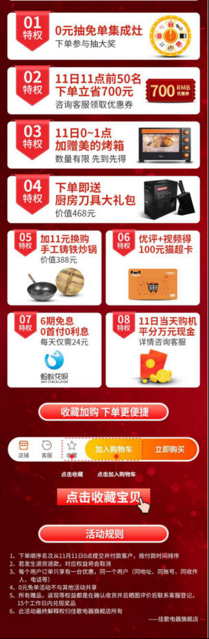 4、双十一当天0-1点下单加赠美的小烤箱;
