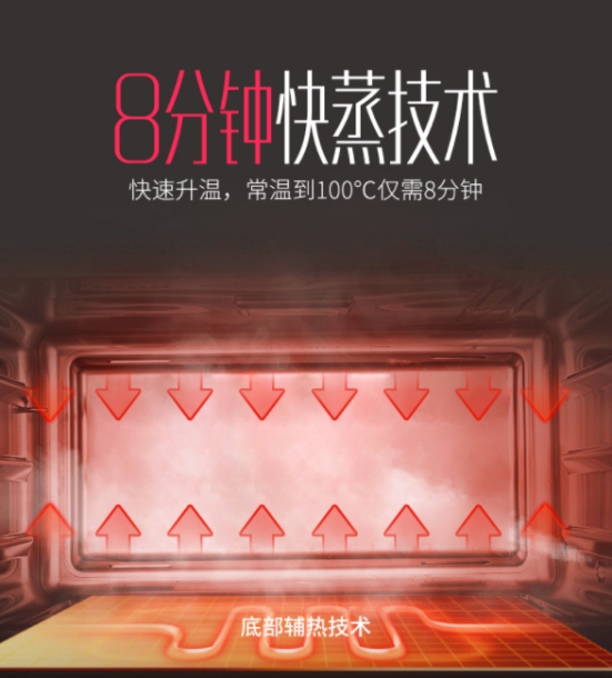 做不到像大厨一样猛火爆炒,那就展示一下“蒸”功夫。佳歌集成灶蒸箱款68L超大容量,一次满足8口之家的菜单需求。多种模式可供选择,快速升温,常温100℃只需8分钟。