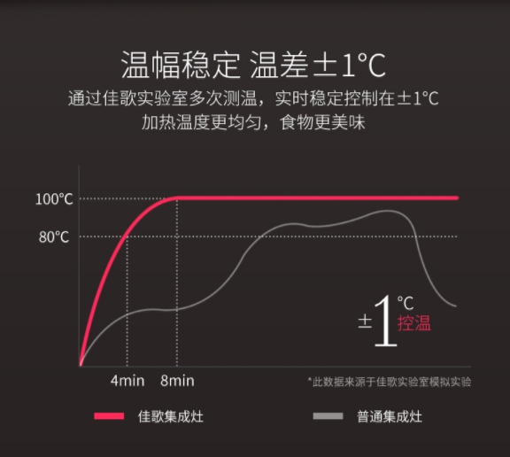 通过佳歌实验室多次测温,实时稳定控制在±1℃,加热温度更均匀,食物更美味。搭载蒸汽后排技术的佳歌蒸箱款集成灶,完全不用担心食物串味的问题~