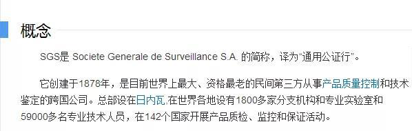 SGS创建于1878年,是目前世界上最大、资格最老的民间第三方从事产品质量控制和技术鉴定的跨国公司。总部设在日内瓦,在世界各地设有1800多家分支机构和专业实验室和 59000多名专业技术人员,在142个国家开展产品质检、监控和保证活动。所以,从权威性这个角度,SGS完全值得信赖。