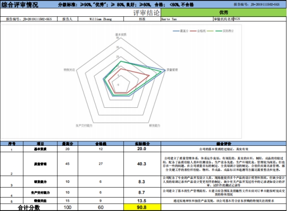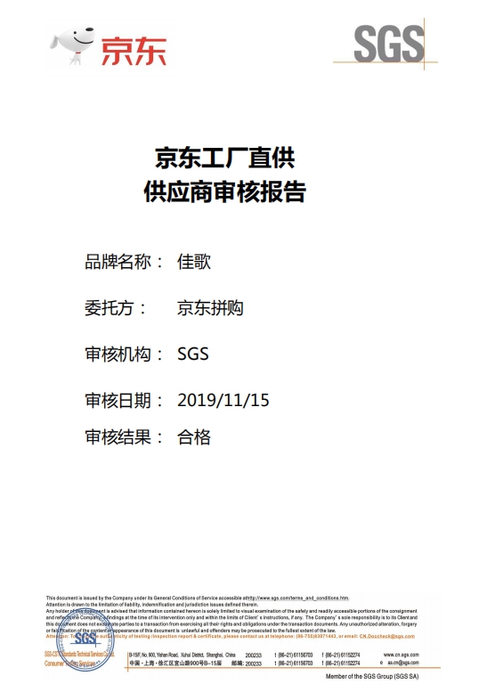 此次,为京东拼购能更广泛引入和扶持工厂型商家,具有优质供应链的工厂型商家进行深度战略合作,成为工厂直供认证商家。拼购专门对此做了一个产品检验和验厂入驻,而佳歌在此次检测最后成绩评定为优。