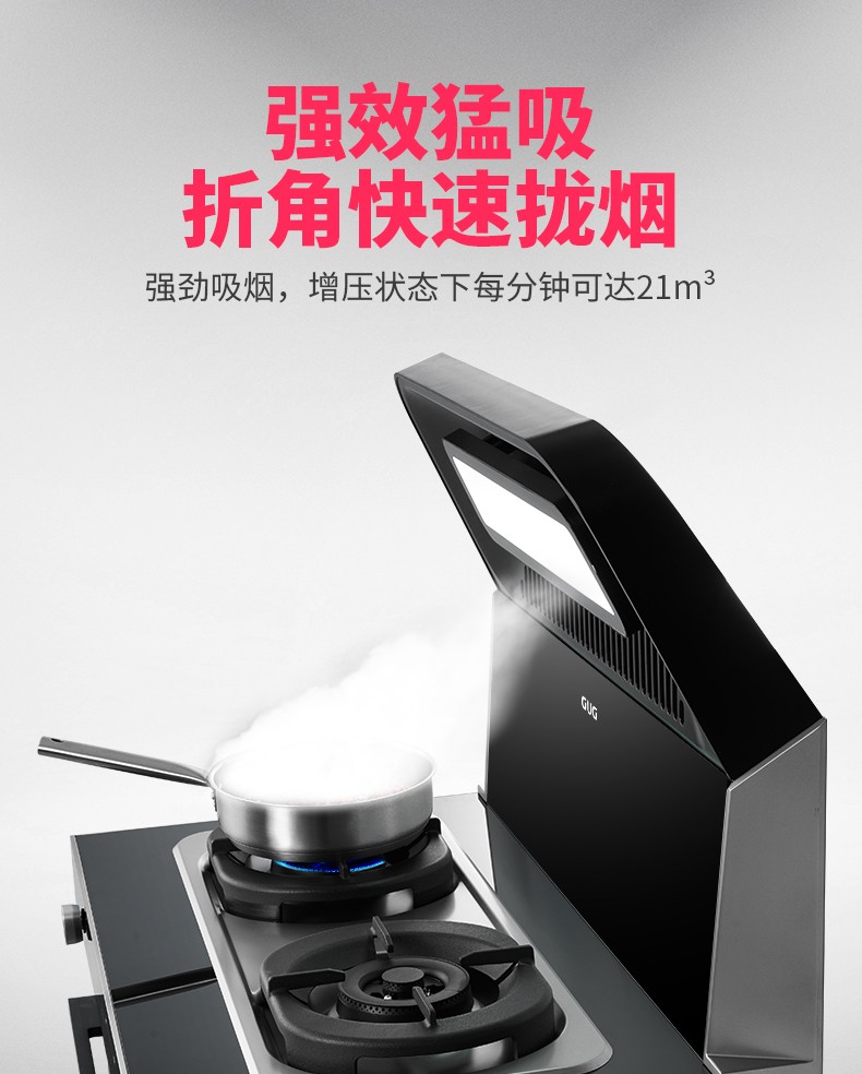 佳歌F1款集成灶白色机身优雅高贵,头部异面拉丝纳米工艺尽显奢华,90°翻盖设计,开启灶具自动打开吸油烟,关闭灶具延时3分钟关闭防止异物掉落,适合品质细节颜值控。