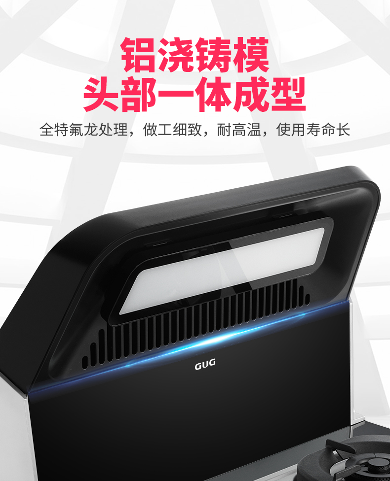 佳歌一米阳光款集成灶采用一体铝浇注模头部设计,成为业内罕见的头部一体成型的集成灶。折角设计强效拢烟不逃逸,全特氟龙涂层包裹不沾油一擦即净,适合只要爆炒不要油烟爱烹饪不爱清洁的你。