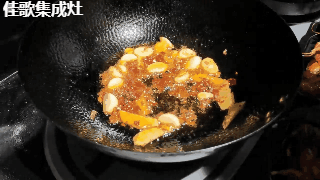 7. 关火盛盘,佳歌集成灶自动延时3分钟关闭油烟机,吸净残余油烟。