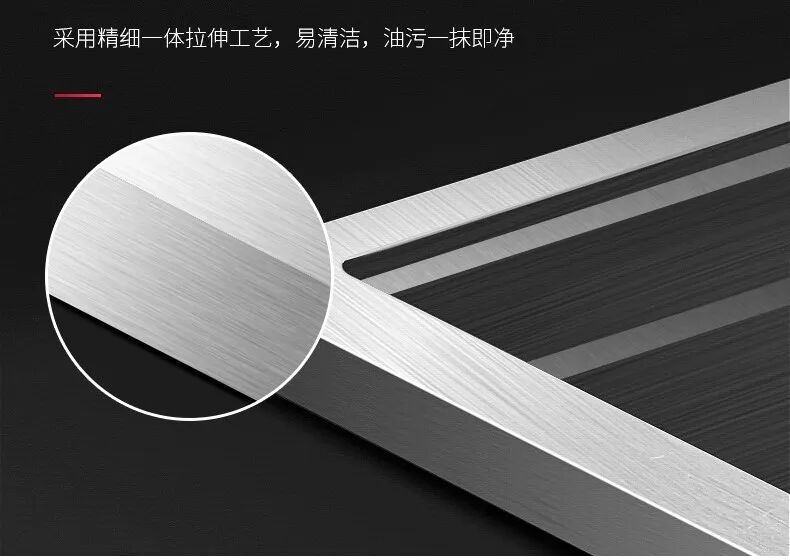 水槽清洁十分复杂,在挑选水槽时应该尽量选择好清洁的产品。佳歌集成水槽采用304不锈钢材质,不吸油油渍一抹即净。一体拉伸成型工艺,边边角角不留缝,不藏污纳垢,清洁起来更方便彻底。