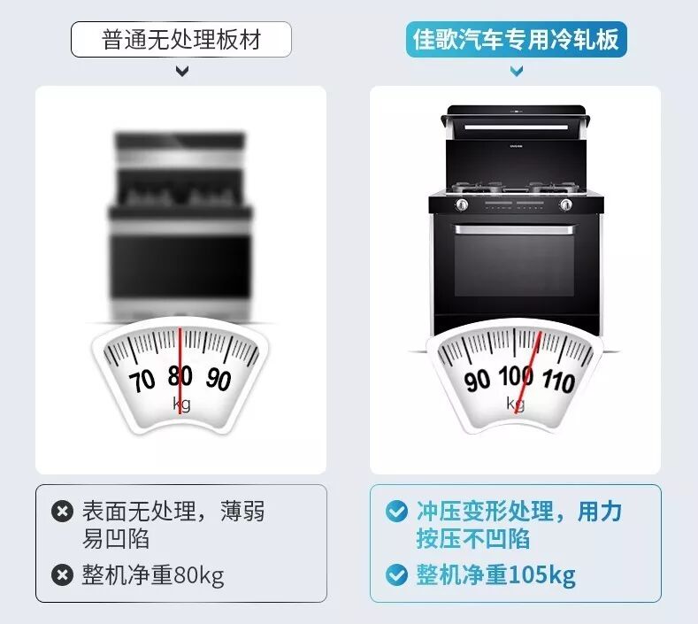 在产品用料上,佳歌集成灶也选用更高规格的材料。整机净重105kg,45叠纯铜电机,纯铜炉头,5倍成本的锌合金恒温旋钮,能养鱼的潜水艇牌止回阀等等高品质部件,都只为让每位消费者都能享受大火爆炒无油烟的健康烹饪!
