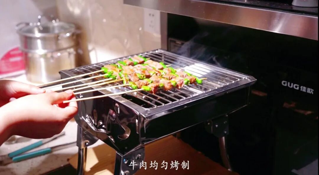 吸力大,风压足,还更静音。用佳歌集成灶做室内烧烤,自然一点都不担心油烟问题啦~