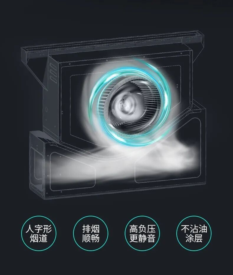 传统的吸油烟机吸风口在人头部位置,与灶台距离过远,无论是烧烤还是日常烹饪,油烟都无法在瞬间被吸进烟腔。更不必说油烟过脸才能被吸走的设计,在到达吸风口之前,你就已经被油烟呛到了。