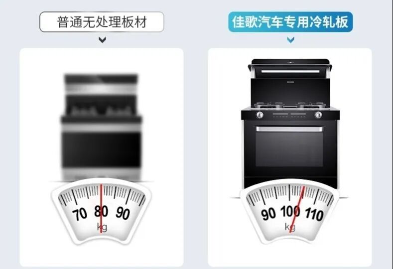 佳歌集成灶甄选汽车专用冷轧板,大量使用超普通0.5mm厚度的0.8mm厚度板材,整机净重105kg,相比普通80kg集成灶真材实料肉眼可见!大部分工艺处理都离不开基本的不锈钢板,佳歌自动冲压生产线也要求更高品质的板材,所以板材用料是本次盘点的基础。