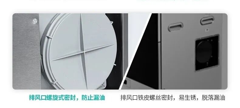 与普通集成灶采用的铁皮螺丝密封不同,佳歌集成灶排风口采用螺旋式密封,不会产生螺丝密封容易生锈,一旦螺丝脱落就会渗漏油的问题,长久使用不漏油,便于安装维修。