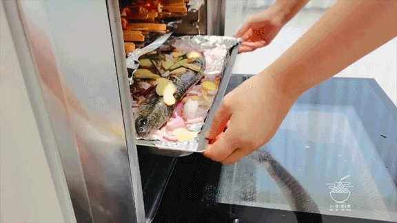 性价比高不说,操作起来也超简单!只需将腌制好的鱼放入内置64道菜谱的佳歌蒸烤消一体集成灶,旋转旋钮找到蒸烤模式下的香辣烤鱼菜谱,选定确认即可!