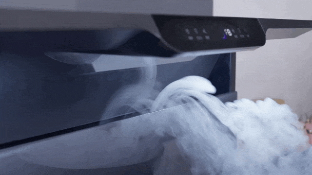 原来同学家用的是佳歌最新款的A23DZK双蒸烤集成灶,吸油烟能力很有一手。据说配备的是超高动力的九档直流变频电机,电机转数会随着排烟阻力的增大而同步智能提升,即使是下厨高峰期也无惧油烟问题,绝对是高楼层家庭福音。