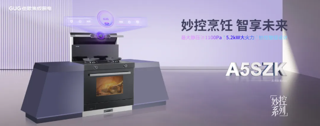 佳歌新品妙控系列A5SZK蒸烤一体集成灶,集烟机、灶具、蒸烤箱功能于一身,为用户带来一站式便捷烹饪体验。独特的Ui妙控旋钮,操作便捷;猛火极限爆炒,受热均匀;黑晶纳米磨砂玻璃台面,疏水疏油易清洁;70L一体拉伸烤瓷内胆,安全耐用,蒸烤效果出色,让你一键即可享受烹饪的乐趣!