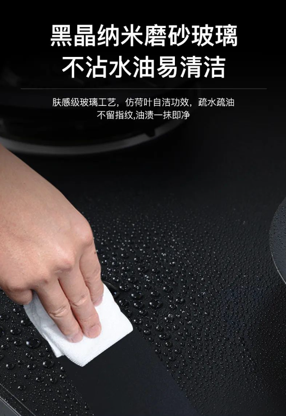 佳歌A3DZK集成灶台面采用黑晶纳米磨砂玻璃,疏水疏油,油污一擦就净;底部集油盒抽拉式设计,轻松冲洗不洒漏,清洁流程更简单。