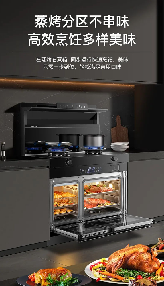 佳歌A3DZK双蒸一烤集成灶,左右独立蒸烤可同步速烹,精准控温、互不串味,还省时易操作;逢年过节多人聚餐时,也能轻松搞定一桌菜,提高烹饪效率。
