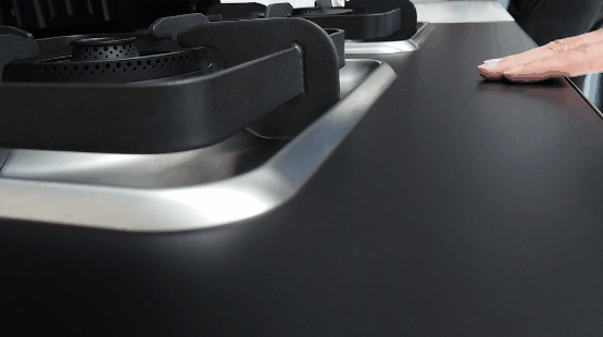 磨砂玻璃面板的燃气灶具备优秀的疏油抗指纹特性,在厨房重油污环境下比普通黑晶面板更容易清洁打理。