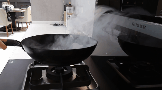 我们使用烟饼模拟炒菜,检测佳歌A6DZK的排烟性能,肉眼可见产生的浓烟被悉数吸走,烟雾几乎没有逸散。