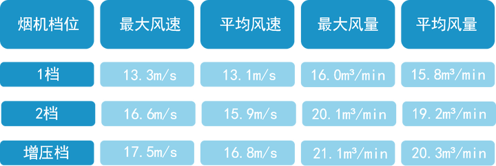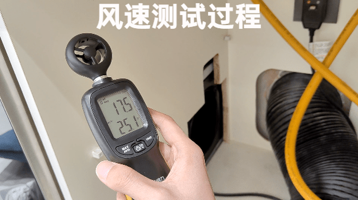 最后我们准备了风速仪采集佳歌A6DZK的风量数据,得出的数值和官方标称的二档风量18m?/min,增压档21m?/min相差不大。