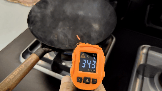 A6DZK的燃气灶热负荷为5.0kW,实测在大火状态下,耗时2分钟左右,炒锅表面的油温就达到350℃以上,用于油炸、爆炒都很合适。