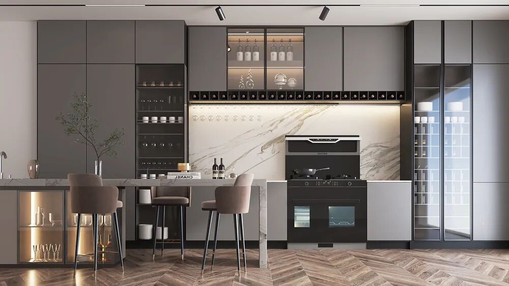 符合现代简约的年轻化时尚精髓,去繁化简开阔整体格局,恰如其分地满足身心心欲,佳歌集成灶终端形象从空间设计到所有细节,都与品质生活相结合,打造最舒适的厨房空间。